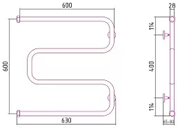 Водяной полотенцесушитель Сунержа Ш-образный 600х600 Н. Г. 1 без покрытия