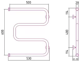 Водяной полотенцесушитель Сунержа Ш-образный 600х500 Н. Г. 1 без покрытия