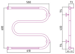 Водяной полотенцесушитель Сунержа М-образный 2П 600х600 Н. Г. 1 без покрытия