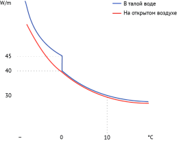 Погонная мощность в ледяной воде, Вт/м