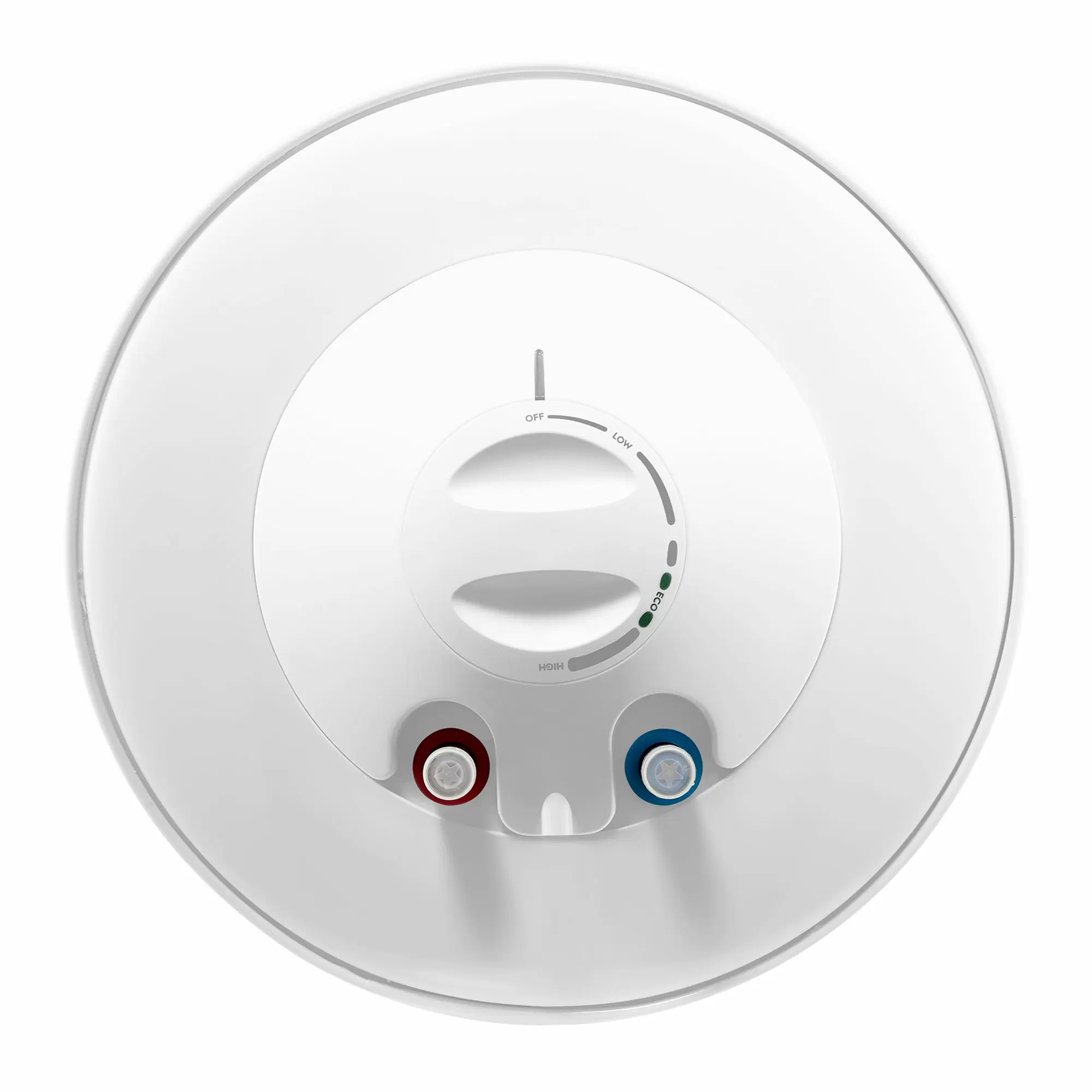 На нижней крышке водонагревателя расположена удобная и интуитивно понятная панель управления. На ней размещены ручка включения прибора, с помощью которой можно задать нужную температуру нагрева воды в диапазоне от 30 до 75°С. Используя функцию экономного режима (положение «ЕCO»), вода будет нагревается до температуры 55°С. При этой температуре, образование накипи сводится к минимуму и позволяет снизить расход электроэнергии.
