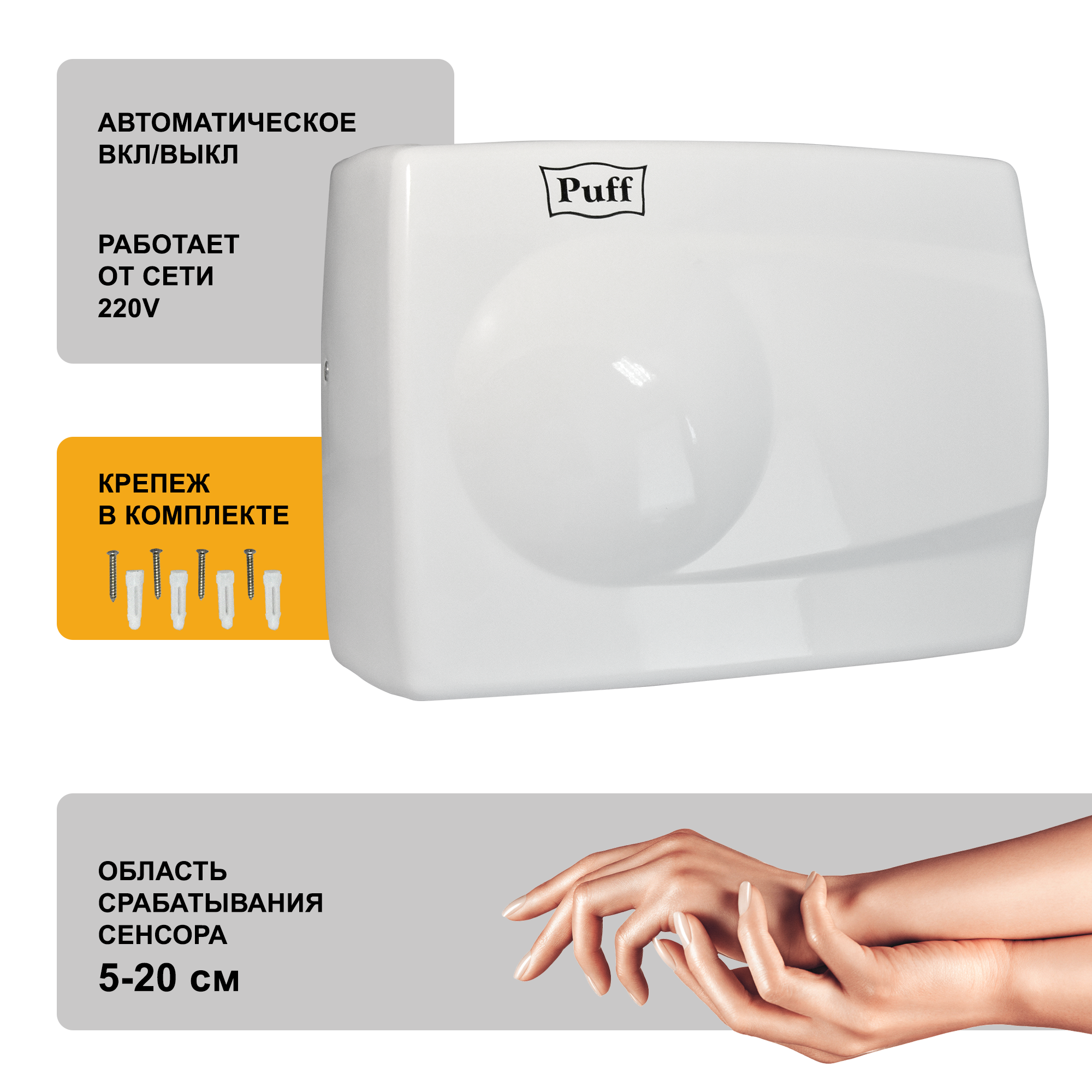 Сушилка для рук Puff-8828W антивандальная тихая