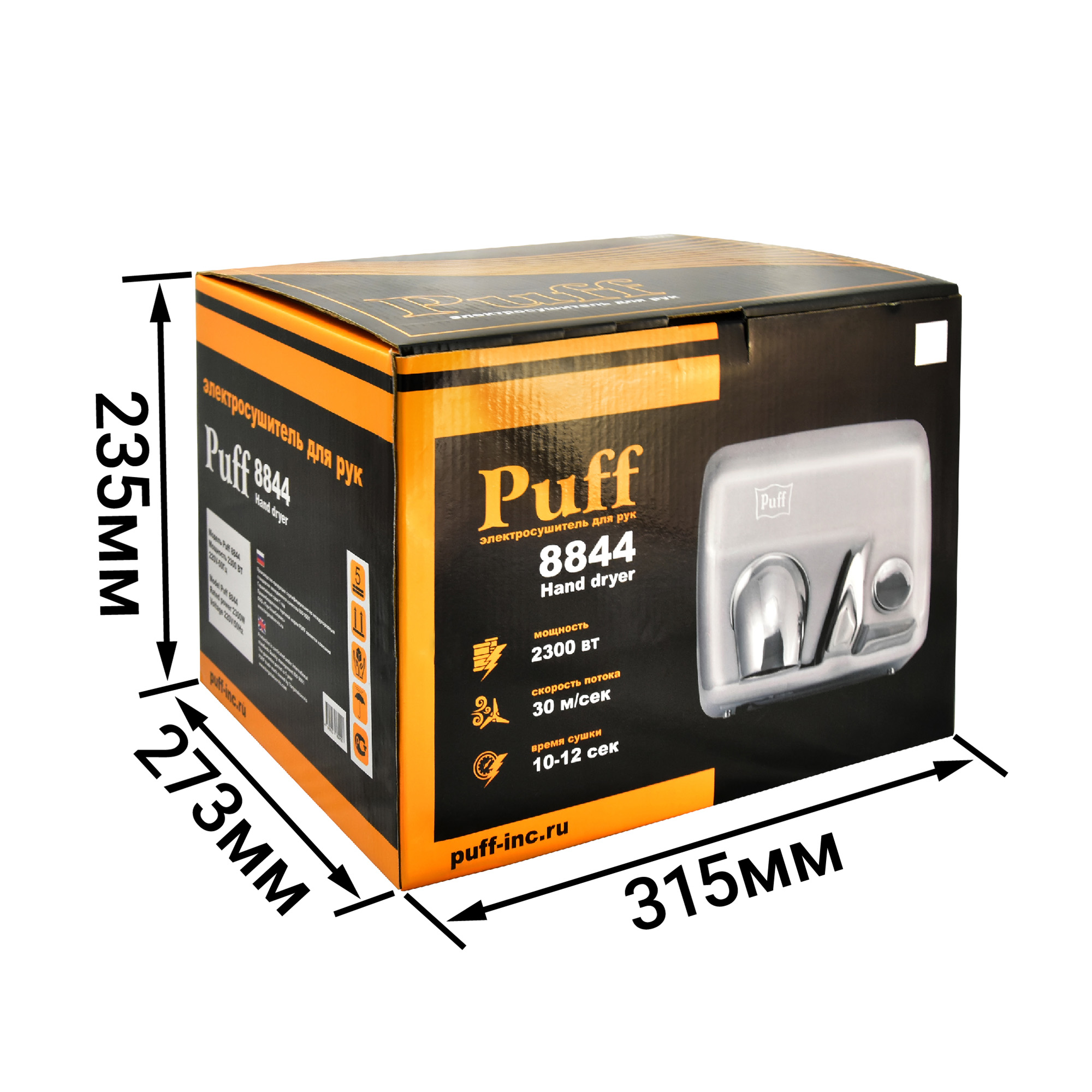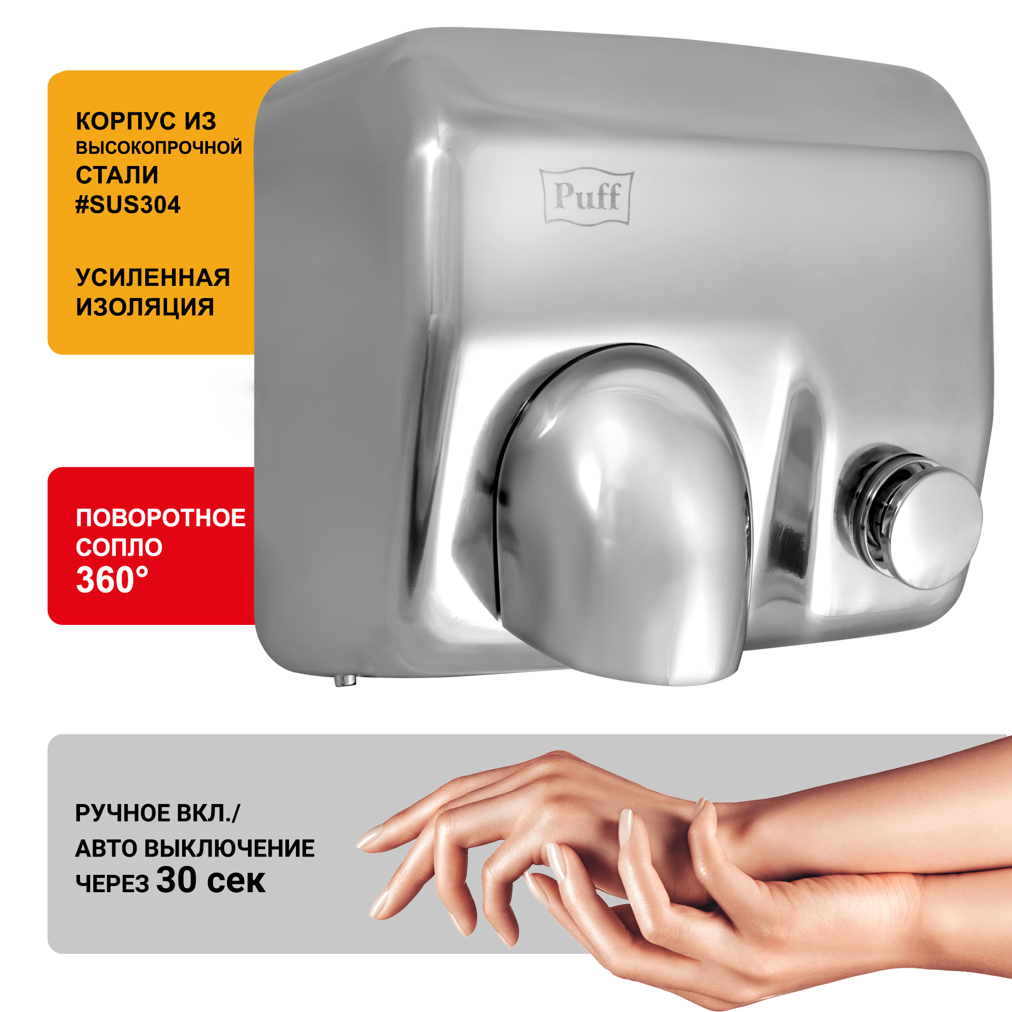 Электросушитель для рук Puff-8844, с кнопкой включения