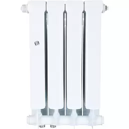 - Биметаллический секционный радиатор. Современная модель, привлекающая стойкостью к повышенному давлению, универсальностью применения. Не требовательна к теплоносителю. Изготавливается одновременно из нескольких материалов: внутренний слой из стали и меди, внешний из алюминия. Все материалы способствуют повышенной стойкости к коррозии, оптимальной теплоотдаче. Цветовые решения устройства могут быть самыми разными. Также преимуществами модели являются: разнообразие размеров, простота установки, малый вес, возможность подсоединять секции. Единственный минус — повышенная стоимость.